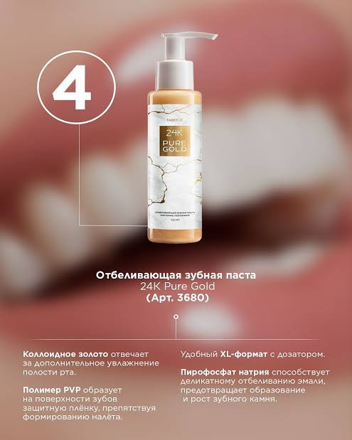 ویژگی خاص: سری لوکس طلای خالص ۲۴ عیار، ترکیبی از زیبایی و مراقبتهای دهانی خانگی کارآمد است. • فقط ۷ روز استفاده برای لبخندی درخشان! • خمیر دندان سفیدکننده، رنگ سفید طبیعی دندانهای شما را برمیگرداند و به شما امکان میدهد آن را برای مدت طولانی حفظ کنید.